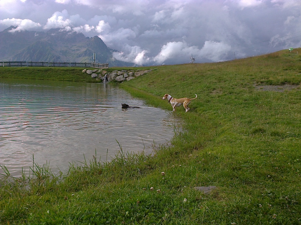 Le départ se fait sans encombre, Zawa profite d’un ruisselet pour s’hydrater, elle tracte très bien sur cette première partie, seul un petit « caca » (de Zawa je précise) viendra ralentir notre ascension. Ce premier monotrace est certes assez sélectif, il sert de zone d’entrainement aux pratiquant du kilomètre vertical), mais je dois dire qu’avec une Zawa bien motivée il passe bien. Cependant peu avant notre arrivé vers le petit lac (celui de la baignade de la veille) la traction se fait de moins en moins franche, fatigue, un peu de lassitude, bref Zawa n’y est plus trop. Malheureusement nous n’avons parcouru qu’à peine plus d’un tiers de la montée.