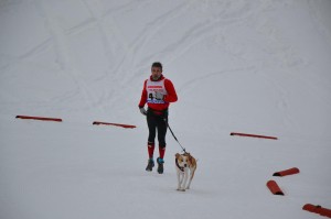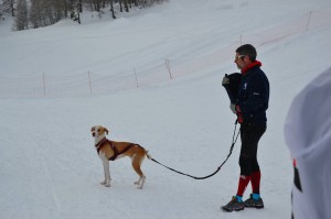 Au bout de cette première partie nous devons pointer en 5ème position, et derrière ça revient fort. C’est là que ma Zawa se dit « bon ben là il est définitivement à la rue, à moi de jouer ! » et elle me part en traction, derrière il ne me reste plus qu’à allonger et à essayer de maintenir le tempo que Zawa impose. Et tant bien que mal ça passe, nous lâchons les poursuivants et remontons sur une partie de la tête de course. Nous doublons un canicrosseur, mais sans lutte car il a du stopper pour enlever des boules de glaces qui s’étaient formées sur son toutou… Nous l’attendons un peu, et repartons avec lui. Ceci a eu pour effet de relancer encore plus Zawa et nous voyons maintenant la ligne d’arrivée se profiler. Je suis dans le dur mais lance les dernières forces dans la bataille. Ouf c’est fait, il me faut de longues minutes pour récupérer un minimum… Encore une fois ce weekend, même si le début de la manche n’a pas été tonitruant, c’est Zawa qui a été au top.