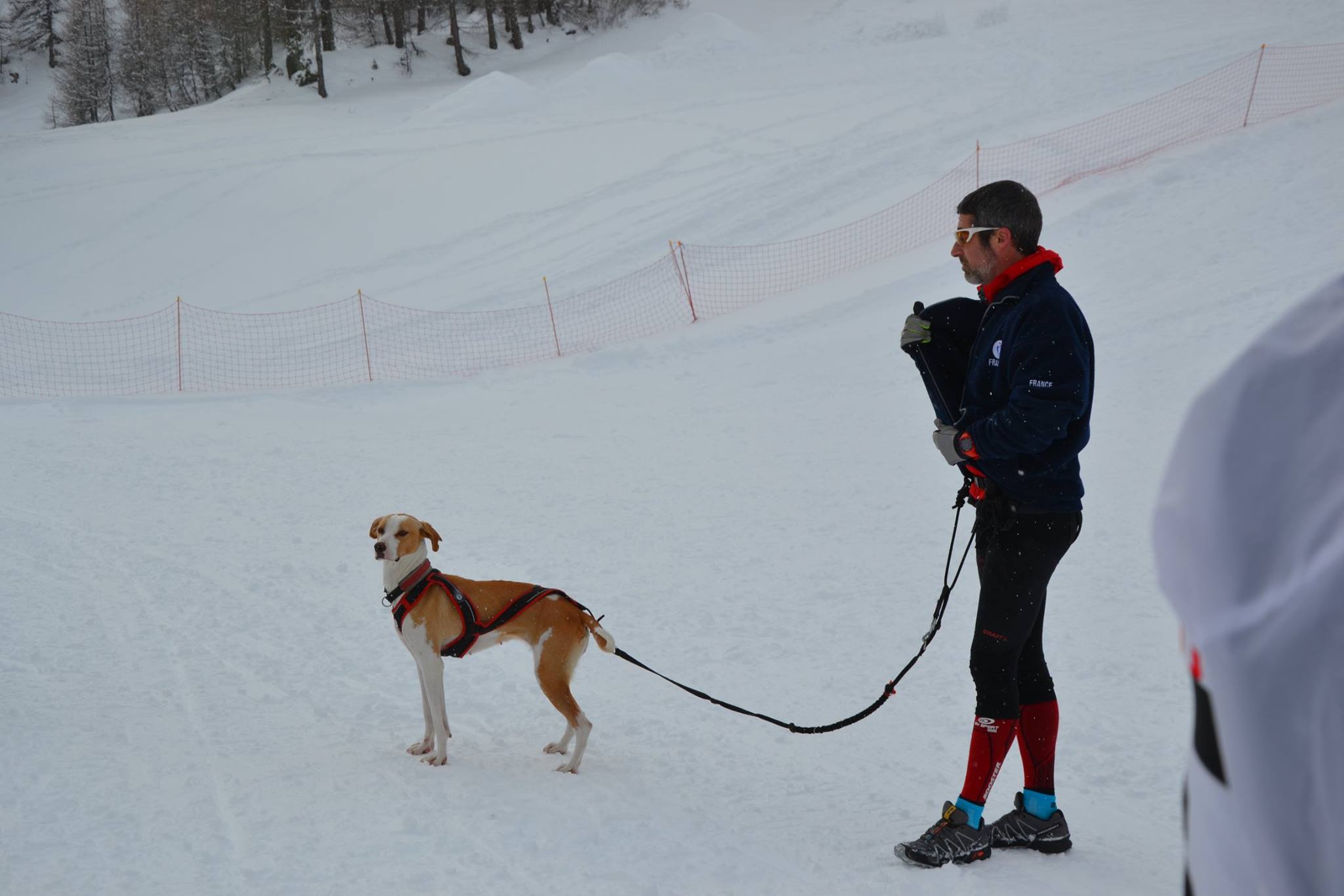 Zawa à l’air moins concernée que la veille, sauf lorsque nous peaufinons notre échauffement avec Isa et Canelle sur la côte. Les filles vont se mettre en place, elles partent, je vois au passage qu’Isa tient Canelle de très près pour éviter les embrouilles avec d’autres chiens et qu’elle perd pas mal de temps. Et c’est à nous… 5, 4 … 2, 1 et BIM les fauves sont lâchés dans la neige.