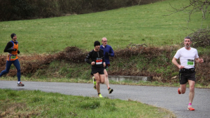 Je me force à boire quelques goutes d’eau, remets mes gourdes en place, et petit à petit rallonge ma foulée. Les mollets chauffent un peu, mais du plat arrive et cette partie sur les chemins un peu herbeux va au final me permettre de mieux récupérer que sur la descente. J’arrive à reprendre un rythme de 4’10 » au kil ce qui me permet de reprendre 2 coureurs qui m’avaient passé tout à l’heure. Arrive une deuxième bosse, ce coup-ci je ne me fais pas avoir, je baisse la tête, et n’essaie pas de voir la fin. Au final elle passe plutôt pas mal. Légère descente après le passage au ravito et Bim Bam Boum, 3ème difficulté. Il y a là 800 bons mètres de montée avec un pourcentage bien sympa. Devant moi se trouve un coureur du club organisateur. Je plonge mon regard vers ses chaussures et entame l’ascension. Il me mènera ainsi jusqu’en haut. C’est passé, et, plutôt pas mal puisque c’est à presque 12km/h que ce kilo là est avalé.