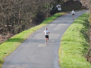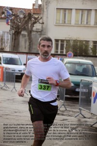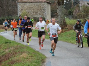 Le départ est très rapide, petit coup d’oeil au GPS il indique 3’30 » au kil, certains ne sont pas venus faire de la figuration, en revanche certains sont partis en sur-régime, cependant difficile de voir qui est sur le 7km et qui est sur le 15km. Je réduis un peu l’allure mais conclu ce premier kilo en 3’48 ». Bon pour l’instant tout va bien, c’est plat, ça caille un peu mais il ne pleut plus, bref… Il reste encore 14 bornes, surtout ne pas s’enflammer le pissou. Le deuxième kilo est plat lui aussi, calé à un peu plus de 15km/h le peloton s’étire peu à peu. Devant le trou est fait, mais impossible de savoir encore sur quelle distance ils sont. Arrivé à 2,5km c’est la séparation et je m’aperçois que je ne suis pas trop mal placé, une douzaine de coureurs sont devant moi, mais les premiers sont déjà loin.