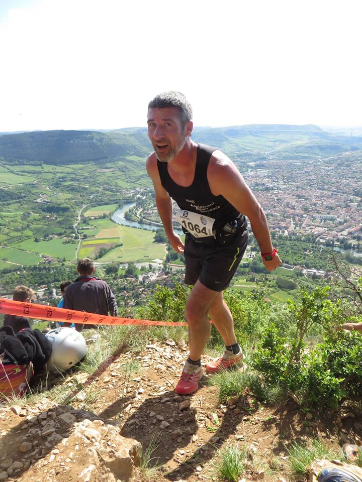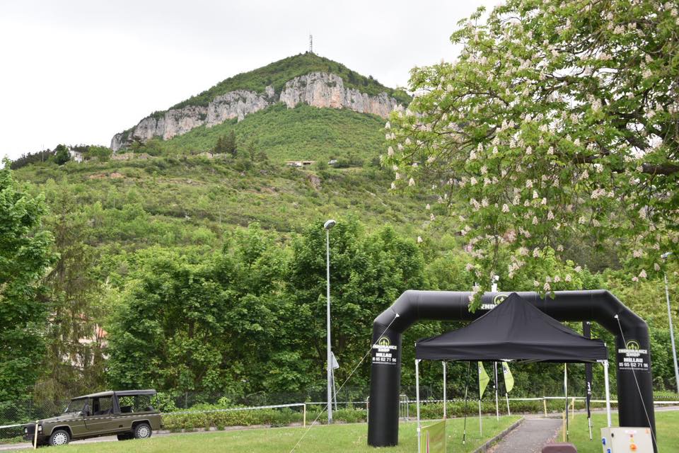 10h30, j’arrive à Millau, je trouve la base de vie « le Golf Café » très rapidement. Le retrait de dossard se fait là aussi très vite, j’avale un petit café et décide de faire une mini reco. Je pars donc vers l’aire de départ et essaie de deviner un peu le chemin et où va t’on arriver… Dans un premier temps je me dit non ce n’est pas possible, ce n’est pas ce sommet beaucoup trop loin et escarpé.