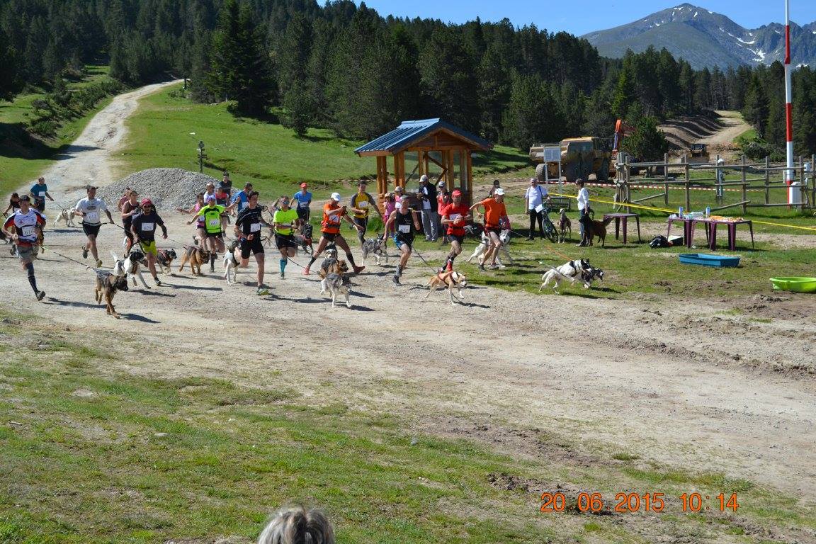 10h45 nous voilà donc sur la grille de départ au milieu d’une grosse quarantaine de binômes. Heureusement que la ligne de départ est large car nous sommes nombreux et il y a pas mal de chiens bien excités. Bim !!! C’est parti !!!