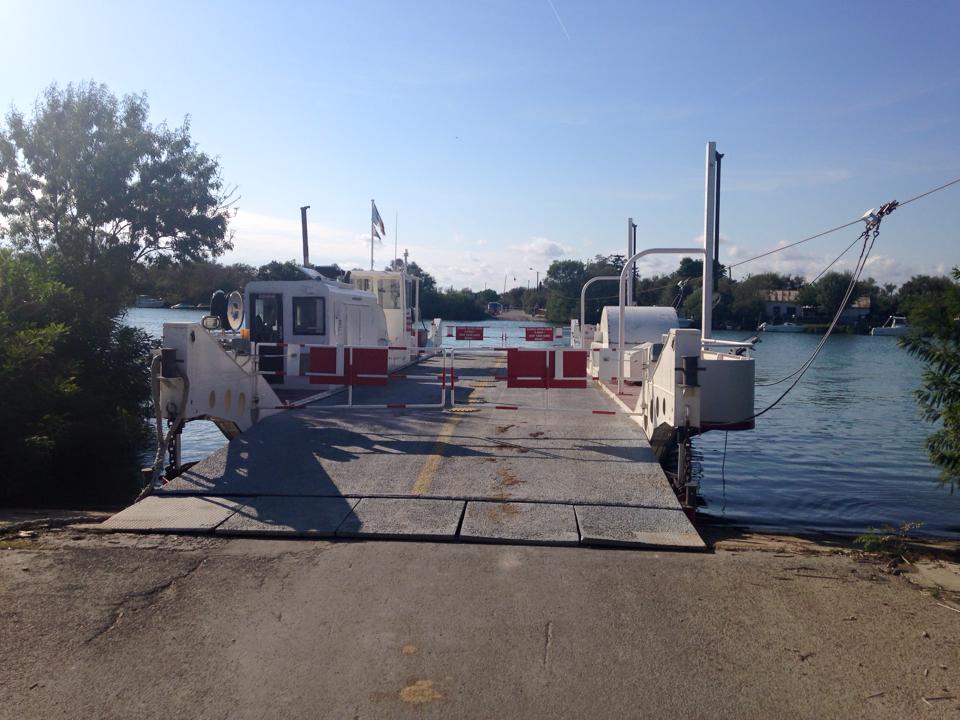 Mais au moins ça a pour mérite de casser un peu le tempo et me permets de baisser un peu l’allure. Au 7ème, j’entend des voix familières, au bout du chemin, sur la route, Kent et Marsou m’ont attendu avant de prendre la route vers Aigues-Mortes. Je sais que je me rapproche du Bac du Sauvage, je profite de leur présence pour checker derrière, personne, j’ai toujours de l’avance, Y a bon ! Et au 8ème me voilà au Bac du Sauvage… Là c’est stop, bah pourquoi ? Bah il faut attendre que le bac soit plein, ou presque pour effectuer la navette. Pas de soucis, le chrono est stoppé et le décompte sera fait par la suite. Psychologiquement ça fausse un peu le machin mais au final ça ne change rien à l’affaire. J’en profite pour jeter un oeil au GPS, moyenne 13km/h sur les 8 premiers kils, impec !