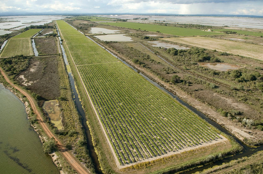 Heureusement vers le 35ème (mon 35ème) une voiture arrive à mes côté, là encore un des bénévole en descend me prend en photo, fait quelques foulées avec moi, et je repars sous ses encouragements un peu ragaillardi. Arrivé en bout de certaines lignes droites je jette un oeil derrière, personne à moins de 2km, ça c’est une bonne nouvelle. J’en profite pour marcher un peu sur les portions où le vent est vraiment très fort, je commence vraiment à lutter et ce ne sont pas les vignes qui s’étalent jusqu’à l’horizon qui me remontent le moral, alors que pourtant j’aime le pinard. 37ème ouf, un ravito qui se tient au Domaine de Jarras-Listel. Je marche les derniers mètres avant d’arriver, je suis alors salué par bon nombre de personnes, et c’est vrai qu’autant jusqu’à l’entrée du domaine j’appréciais une certaine solitude qui se mariait à merveille avec la nature, autant là depuis maintenant quelques kilomètres il me tarde de retrouver la civilisation.