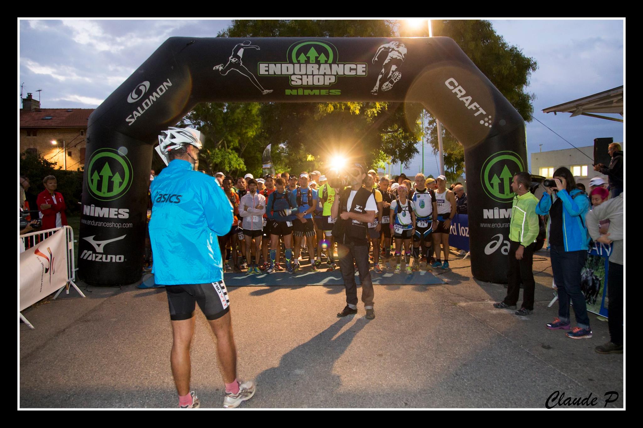 5h et des patates on émerge des tentes, je sors en short, l’erreur, on m’attendait pour le tit’ Dej, 4 piqûres en 2′. En fait un moustique c’est pire qu’un Ninja. Tu l’entends, tu allumes, tu le cherches, il n’est déjà plus là mais il t’a piqué 3 fois. Bon maintenant fuck les mosquitos parce qu’à 7 heures, Marsou prendra le premier relais de 49km et nous lancera dans l’aventure. Donc un bon petit déjeuner, une bonne prépa du matos et feu direction le stade à côté duquel le départ sera donné. On sent Marsou motivé sur la ligne, quelques gouttes tombent, mais le fort vent les chasse rapidement, et Bim c’est parti, juste le temps d’encourager Marsou et le voilà déjà loin.