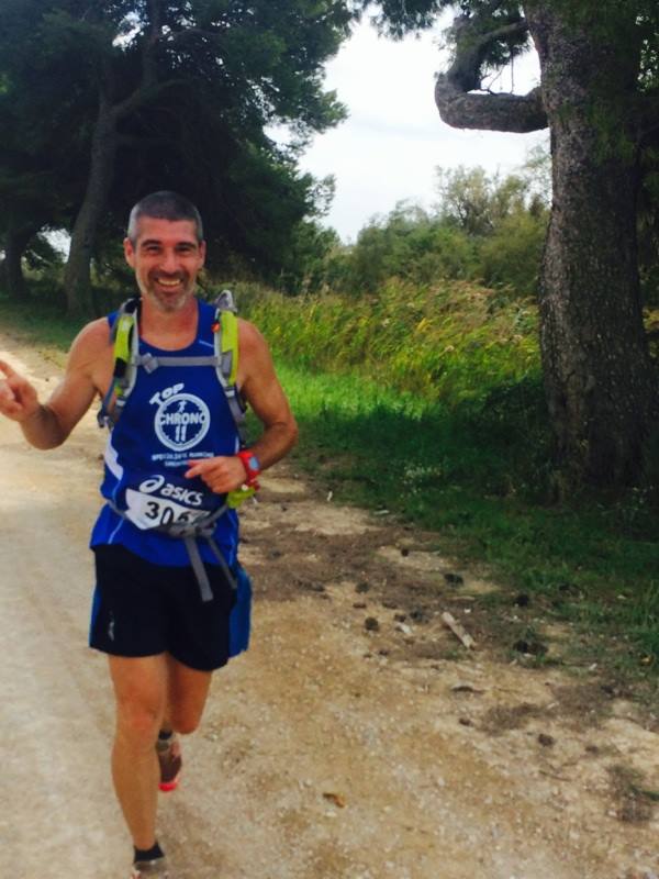 Heureusement à la sortie d’un buisson, enfin les remparts d’Aigues-Mortes sont là devant moi. Allez, encore un kilomètre ! D’un coup je me fait doubler, ok on est toujours 3ème mais bon j’ai perdu au moins 10′ je pense à ce moment là. J’entre dans la cité fortifiée, et malgré les encouragements du public je n’arrive pas accélérer, plus que 400 mètres, 300, 200, c’est dur ! et enfin je vois Kent lui tape dans la main et mes jambes lâchent. Marsou me relève avec une bénévole, m’assoie, au bout de 5′ je réalise que c’est fini. Un coup d’oeil au GPS m’annonce 44km soit 5 de plus que prévu et qu’est ce qu’ils auront été longs ces kilomètres. Mais c’est avec fierté que je réalise le chemin parcouru. Maintenant à Kent de jouer et je sais qu’il va envoyer du steak.