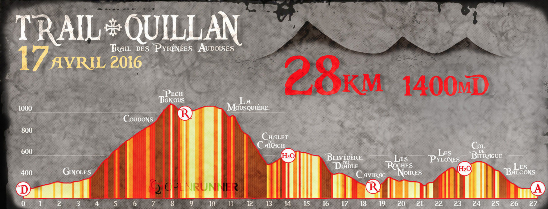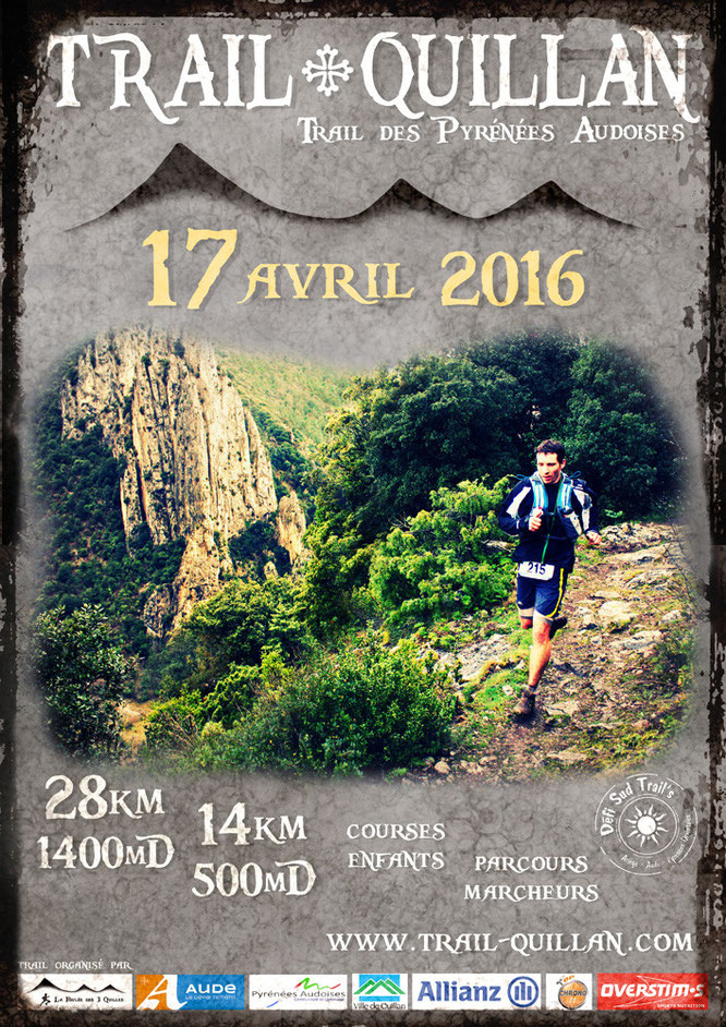 Dimanche 17 avril 4h30 du matin : Heure ressentie bah 3h30 du matin… Il y a quand même dès fois où tu te demandes ce qui ne va pas bien chez toi et puis 30 secondes après c’est oublié, et là pour l’heure c’est direction Quillan et son trail de 28km et 1500 D+. Celà fait 3 ans que j’ai envie de le faire ce trial mais à chaque fois l’agenda ne le permettait pas. Aussi cette année quand j’ai vu que la case était libre, feu j’ai lancé mon inscription et me voilà. Alors il est vrai que dans l’optique de la prépa du Grand Raid de Camargue c’est loin d’être la course optimale ne serait ce que par la différence de dénivelé, du coup ce sera en mode cool sur les côtes, bâtons à la main et puis surtout en mode je me fais plaisir aux mirettes et remonte un peu en enfance.