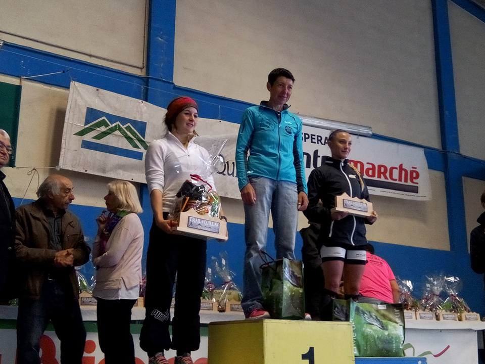 Tout à coup j’aperçois Gilles… Qu’est ce qu’il fout là ??? Il devrait être bien devant… Bah il y est bien devant car maintenant c’est un peu le dernier sprint, il y a une bouce de 4km à faire qui passe en deux fois au même point, si vous êtes fort en math, il a 4km d’avance ! Elle est assez sélective cette boucle, il y a par moment de bons raidillons et la descente vers Quillan est courte et remplie de S. Mine de rien je commence à sentir mes quadris… Oh pas comme si j’avais fait un KV, non, mais il me tarde un peu d’arriver là pour le coup. Je redouble de vigilance sur cette portion descendante pour éviter quelques racines et Bim, c’est l’arrivée au château. Et juste derrière qui est ce qui surgit ? Isa qui en a terminé avec son 14 et qui vient finir les 800 derniers mètres avec moi. Je lui demande comment ça c’est passé et malgré un 400m qu’elle a effectué la veille sur la piste de Perpignan, elle a pris la deuxième place chez les filles sur sa course… C’est pas beau ça ? Ça me mets un coup de boost et du coup j’accélère sur ces 800 derniers mètres histoire qu’elle me raconte sa course au plus vite.