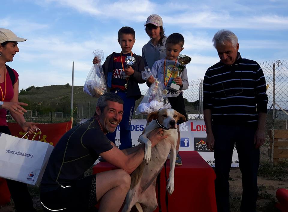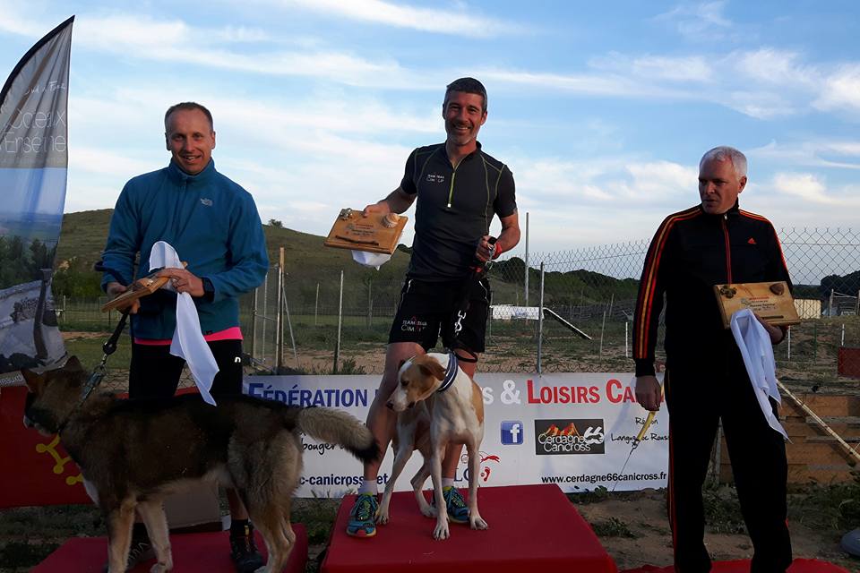 Pas le temps de s’endormir sur les lauriers, puisqu’avec Zawa, alias l’increvable, nous allons avec Marin pour son premier canicross chez les grands. Nous partons pour 1km sur ce qui était notre dernier kilo sur notre parcours. Le départ à peine donné devant ça se met à se gameller, bilan mon petit Marin ben il prend la course à son compte et avec une maturité surprenante gère la course de A à Z en étant pleinement dedans. Il ne se retourne même pas, jauge à l’oreille bref lui qui affiche de 1 à 4 ans de moins que les 7 autres enfants ben … après un superbe sprint à l’arrivée et une course menée du début à la fin il se créé son palmarès en l’attaquant de la plus belle des manières. Il est bien claqué mon petit Marin mais il a des étoiles plein les yeux. Je me détache de Zawa et de Marin et file maintenant avec Matthis qui lui va trotter avec Jazz sur 2km. Compte tenu du haut degré d’intelligence de Jazz je préfère suivre de loin au cas où, et bien m’en a pris car 50 mètres après le départ Jazzou manque de croquer un husky. Ensuite ce sera la course en solitaire que je suivrai en retrait, non sans apprécier leurs efforts conjoints, les deux s’arrachent bien sur ce parcours et prennent la troisième place en enfants 2. Bref All the family sur la boîte ! Superbe journée organisée par l’espace Canicat de Maraussan et c’est bien tard que nous reprenons la route.
