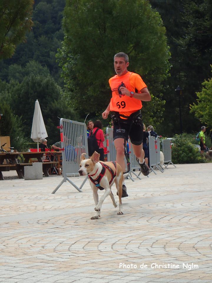 Olivier et Richard viennent d’en finir, mais toujours pas d’Isa, enfin après quelques minutes de stress, la voilà… Elles ont mis 39′, pur hasard ou mauvais souvenir de Canelle, bref elle n’a pas tracté à un seul moment et Isa a du s’employer pour boucler l’étape à la 80ème place. Et nous ? C’est en 34’29 que nous concluons cette étape en prenant la 39ème position ce qui nous place à la 46ème du classement général ! Richard et Olivier sont 52 et 53ème de l’étape, nous leur prenons une petite minute. Théo 45ème et Vince 34ème. L’étape est remportée par Damjan en 27’46 … Petite pause dans la fontaine histoire de cryogéniser les guiboles, une bonne hydratation en terrasse avec Emilien, un bon petit repas. Et… Non ce n’est pas l’heure de rentrer, direction la course enfant 2 de Matthis. Je vais à nouveau le suivre, et c’est surtout pour me rendre compte que demain il pourra, sur ce même parcours partir seul, tant il a bien géré Jazz, énorme progrès et grande confiance de prise. D’un côté tant mieux car demain Marin fera son entrée sur les courses enfant 1 avec Zawa (qui doublera elle aussi pour l’occasion) et il faudra suivre. Maintenant ue tout le monde a couru, direction Auris histoire de recharger les accus car demain, sur le parcours inversé j’appréhende un peu, même beaucoup… Prémonition ? Ce sera dans la suite de nos aventures au TDM.