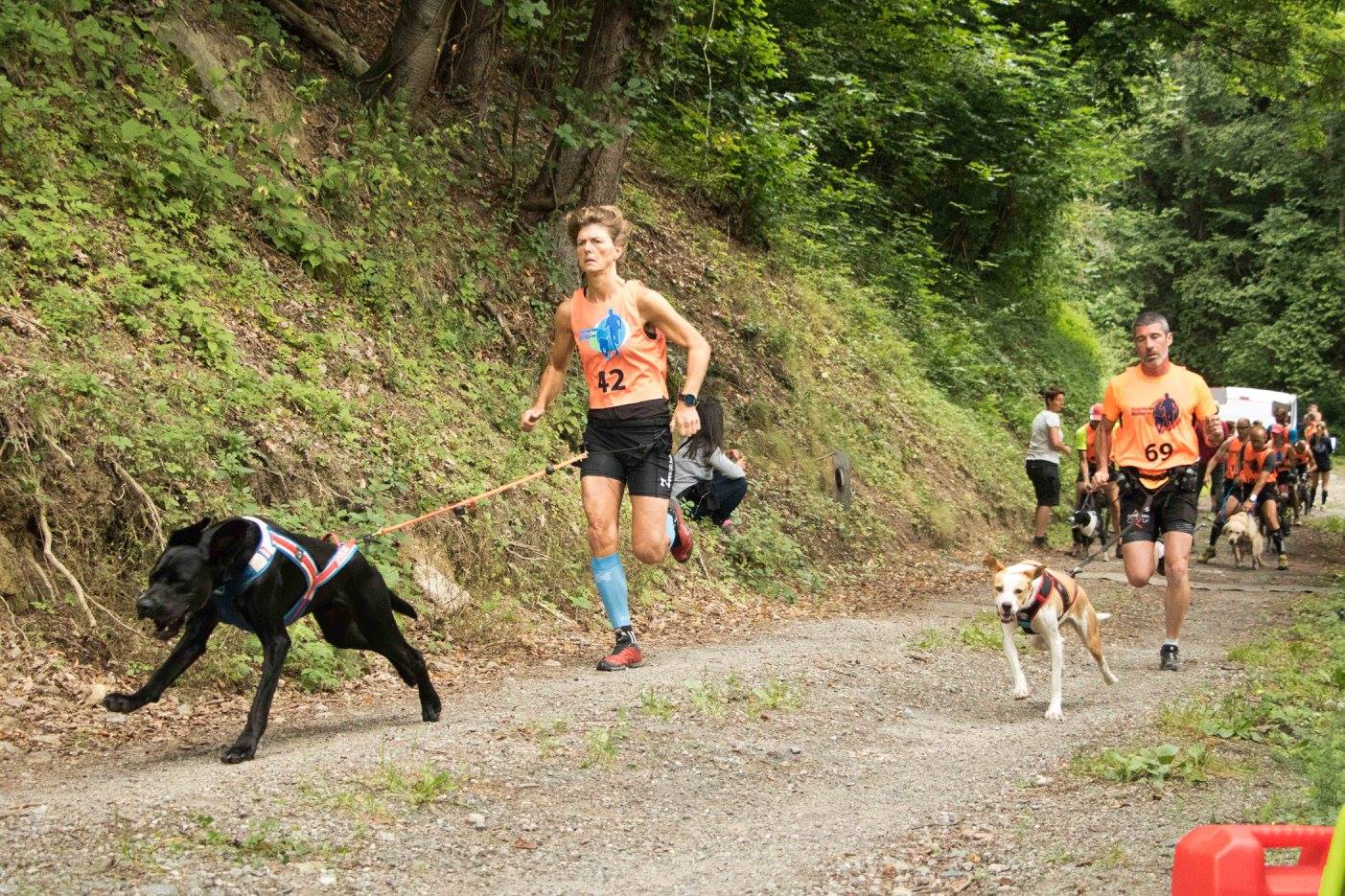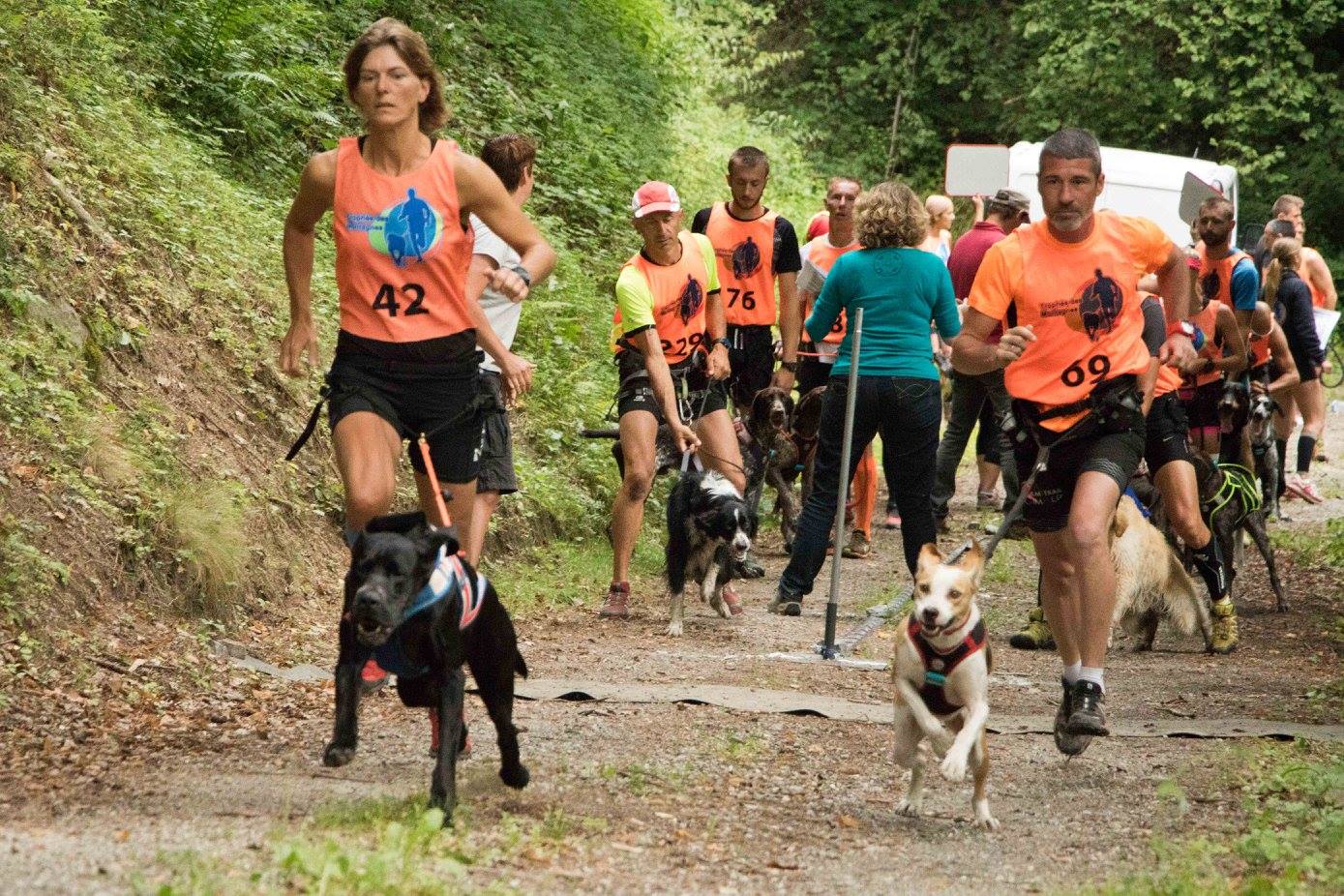 Etant donné que les jambes sont là et que le faux plat montant ne me gène pas, au contraire, profitant de la traction imprimée par Zawa, j’augmente la cadence. Du coup en bouclant le premier kilomètre à près de 15km/h nous passons Bianca et très vite reprenons quelques binômes partis avant nous. Zazaw se tourne alors vers moi et me dit « nous avons besoin d’un plan d’attaque », je lui réponds alors « J’ai un plan… on attaque. » Bon ça évidemment personne ne l’a entendu, mais c’est comme ça que ça c’est passé, nous avons des moyens de communications que seul le TDM et autres canicross peuvent développer entre un toutou et un humain, en langage plus courant, ça s’appelle de la complicité et avec Zawa on en a à revendre, mais on ne la vend pas, on se la garde pour nous deux. Nous avalons alors les 2km de piste montante comme à la parade. Une fois en haut, ben il n’y a plus qu’à descendre. J’aperçois le panneau « Free dog » libère belette et entame une descente, comme chaque année, en mode acrobatique.