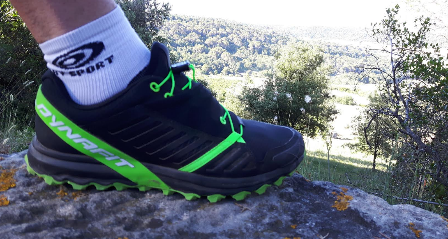 Etant donné que le terrain est mixte, pas mal de passages pourri avec des marches, de la terre, des cailloux et du lisse, il constitue un bon étalon pour voir les qualités et les défauts de la chaussure. Dès les premiers appuis je ressens un très bon dynamisme dans les montées la plante termine bien la phase de propulsion et grâce aux crampons les appuis sont très surs.