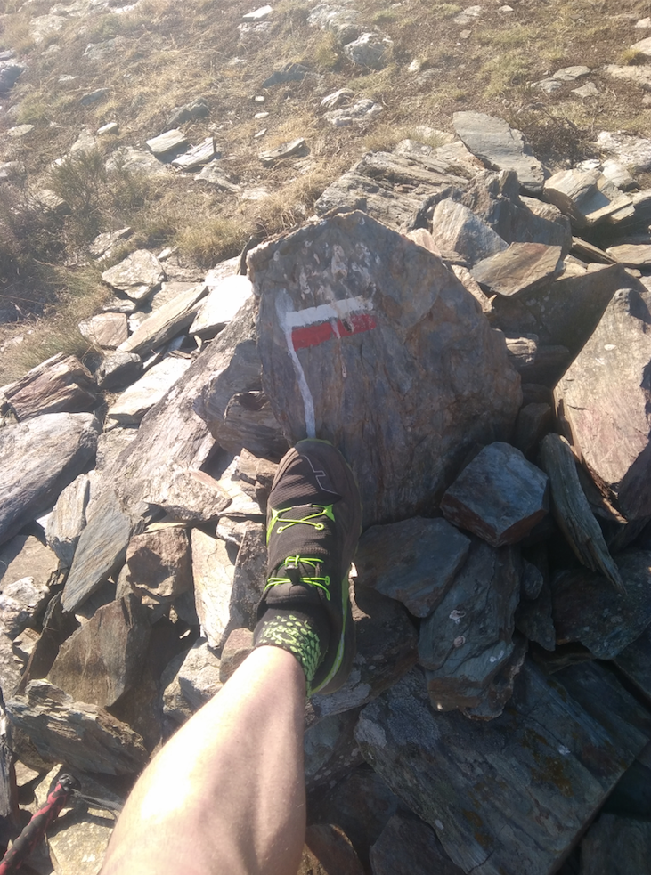 Tant bien que mal nous arrivons au sommet et marquons une petite halte. Et feu pour la descente ! Au début ça va et si on revient à nos moutons je commence à me faire à la chaussure et à vraiment optimiser la descente.
