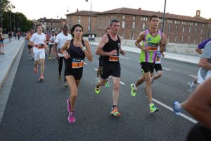 Tant pis pour le chrono, je décide donc de me caler à 13km/h et de profiter de la superbe ambiance qu’il y a autour de la course. En effet les passages dans un enchevêtrement de rue piétonnes me permettent de découvrir un Toulouse qui m’était inconnu. Par ailleurs, le beau temps, les résultats du bac ayant eu lieu le matin même, la multitude de coureurs présents sur la course, ont emmené une foule impressionnante massée tout le long du parcours. les passages devant les bars sont des plus folklo et le passage en bord de Garonne épique.