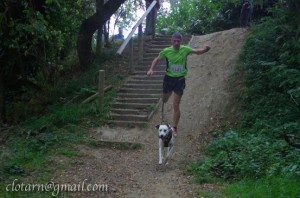 Ce canicross ce décomposait en 2 manches, la première, longue d’un peu moins de 800 mètres permettait de déterminer à la fois l’ordre de passage de la deuxième, mais surtout le handicap temps qu’il faudrait rattraper lors de la manche de l’après midi longue de 6,5km. Après un échauffement conséquent, Go vers la ligne de départ où les concurrents s’élancent toutes les 30 secondes.