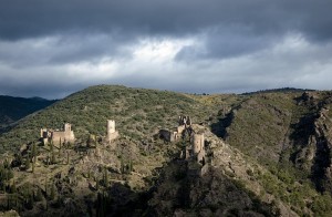 Avec Bastien nous essayons quand même d’appuyer un peu dans les petites rues sinueuses de Limousis histoire de ne pas nous retrouver en file indienne sur le premier monotrace qui arrivait au bout de 800 mètres. Les pluies de ces derniers jours rendaient certaines zones un peu glissantes, mais aucun incident à déclarer. Tranquillement nous nous dirigeons vers le pied des châteaux de Lastours pour aborder la première vrai difficulté, un single de 900m de long à près de 17% de dénivelé. Là encore le sol composé d’ardoise était glissant. Je décidais de me faire plaisir en appuyant un peu, puis arrivé au sommet j’attendis près de 4 minutes que l’ami Bastien (bien esquinté par cette côte) ne pointe le bout de son nez.
